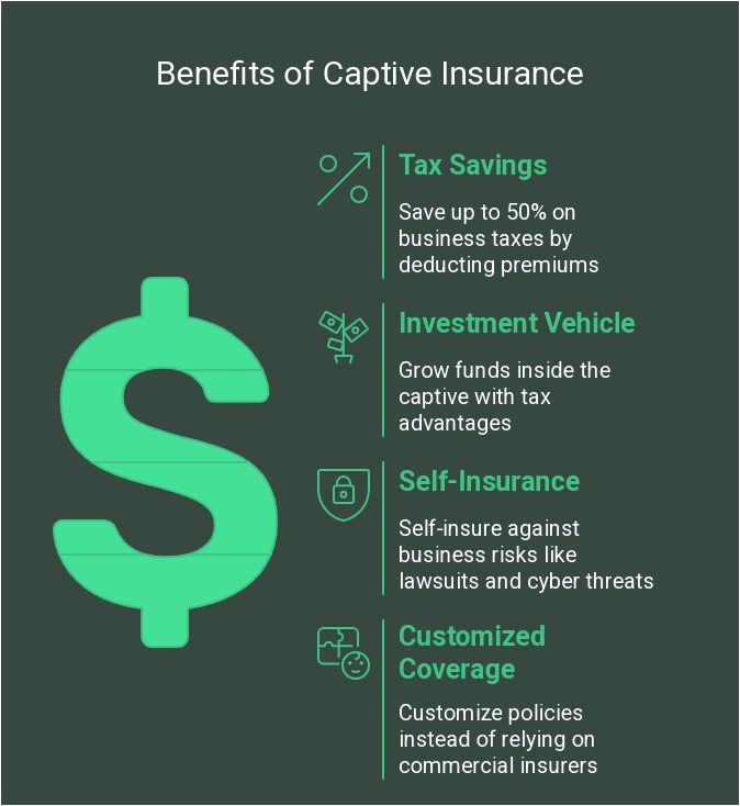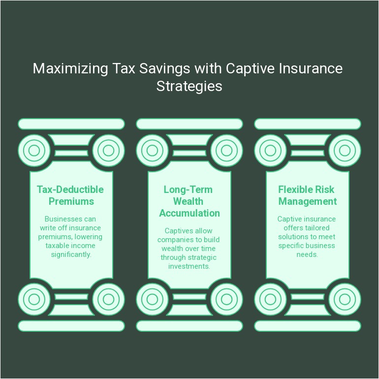 Businesses can write off insurance premiums paid into the captive, lowering taxable income significantly.