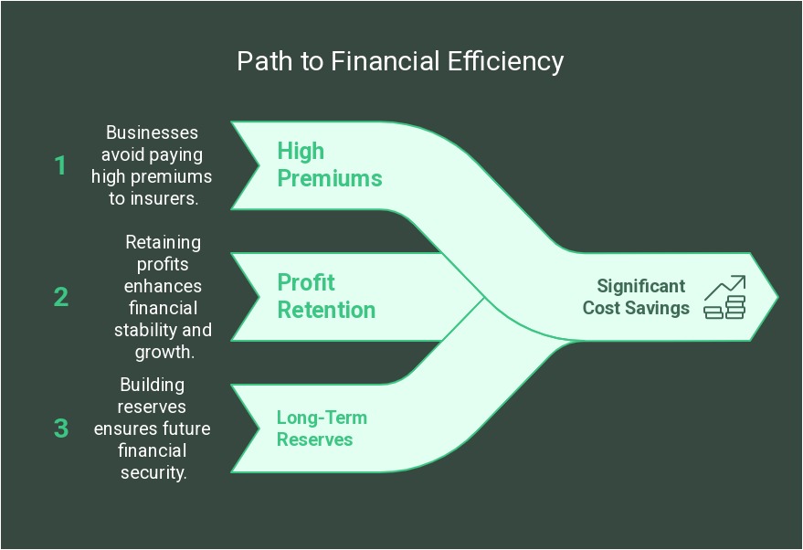 Instead of paying high premiums to third-party insurers, businesses retain profits and build long-term reserves.