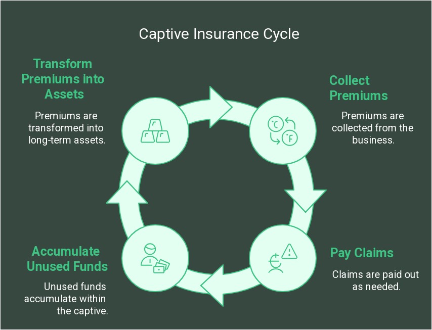 Any unused funds accumulate within the captive, turning insurance premiums into long-term assets.